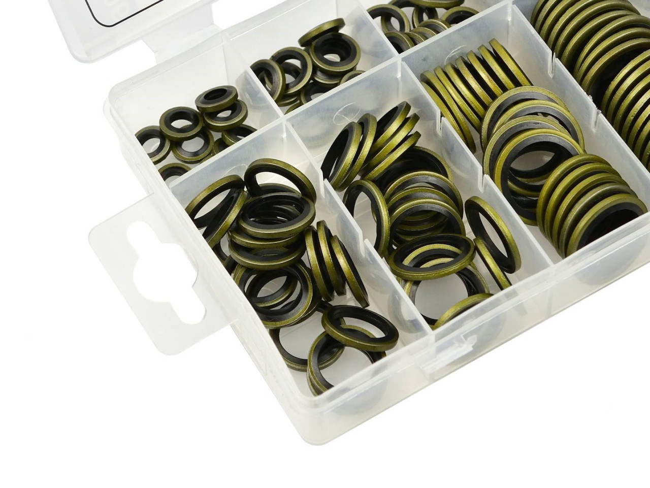 Set metalno-gumenih podloški u veličinama od M6 do M24. Namijenjene su za zaptivanje navojnih spojeva. Izrađene su od čelika i NBR gume. Samocentrirajuće podloške osiguravaju čvrsto prijanjanje gume uz navoj te pouzdano i dugotrajno zaptivanje navojnih spojeva.