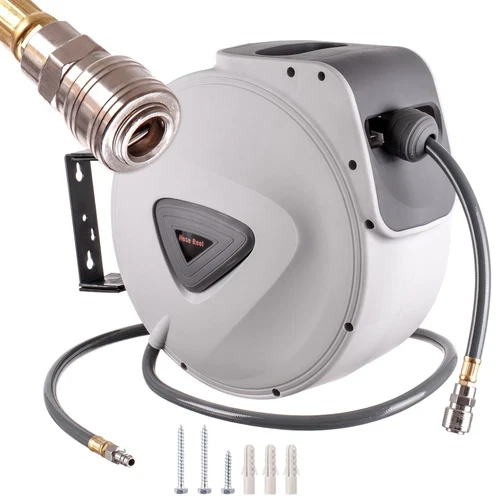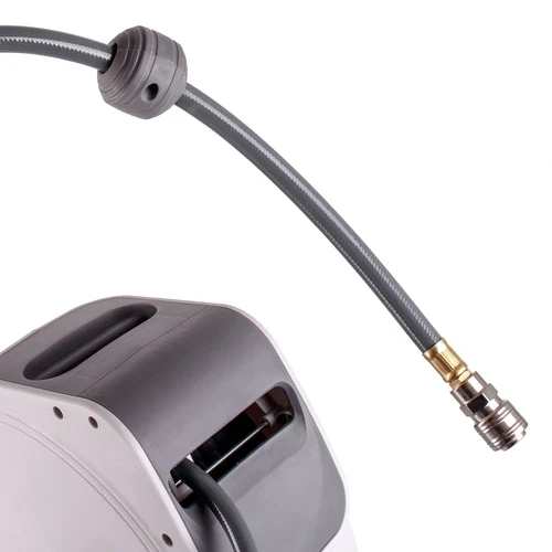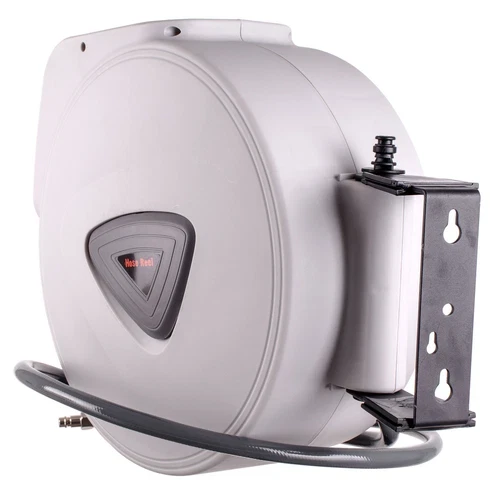 Kolut za crijevo je opremljen blokadom koja sprječava da se crijevo samo uvuče, te nosačem za montažu koluta na zid. Tiplovi i vijci za pričvršćivanje su uključeni.