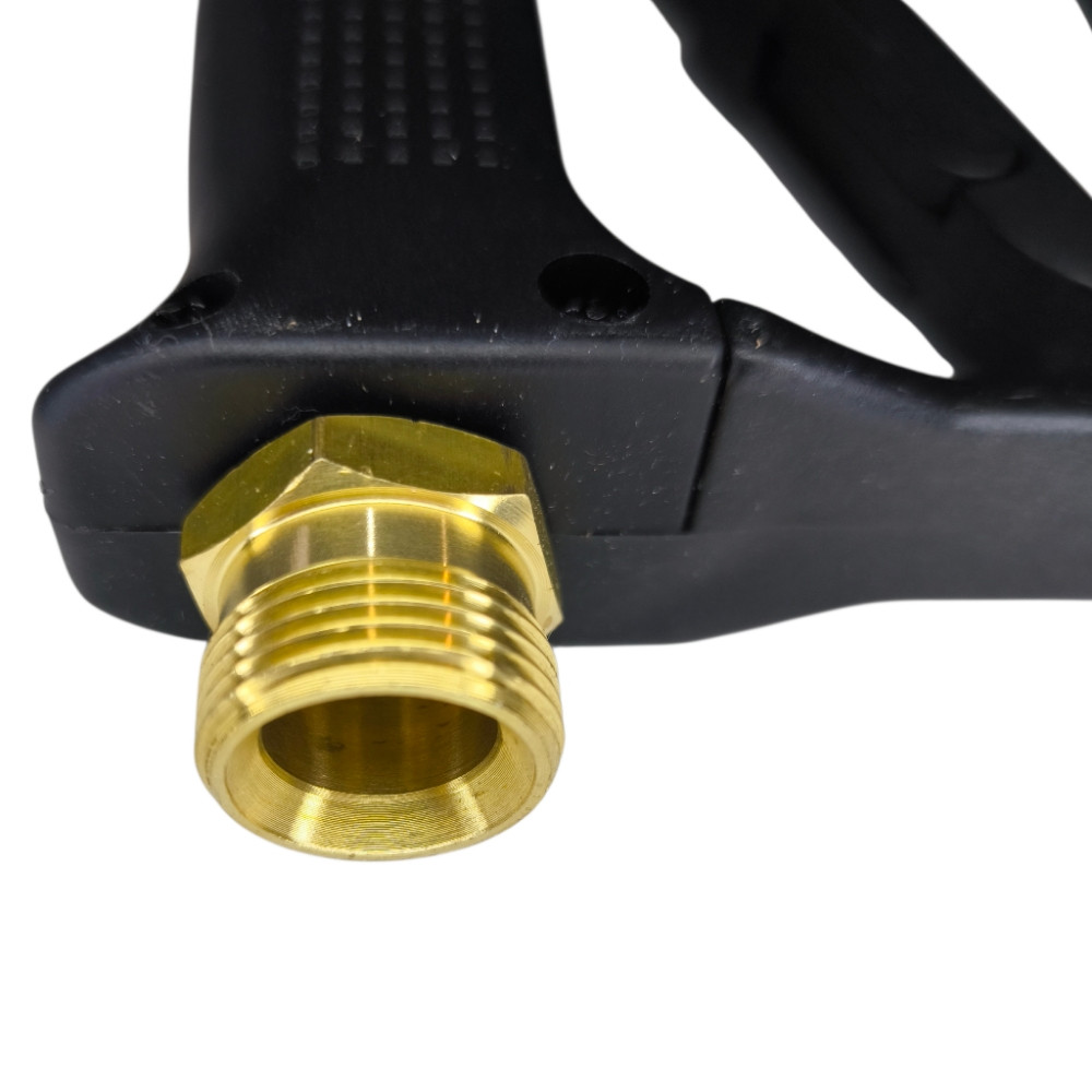 Pištolj ima navoj za spajanje crijeva i navoj M22x1,5 sa donje strane što ga čini kompatibilnim s većinom KARCHER crijeva