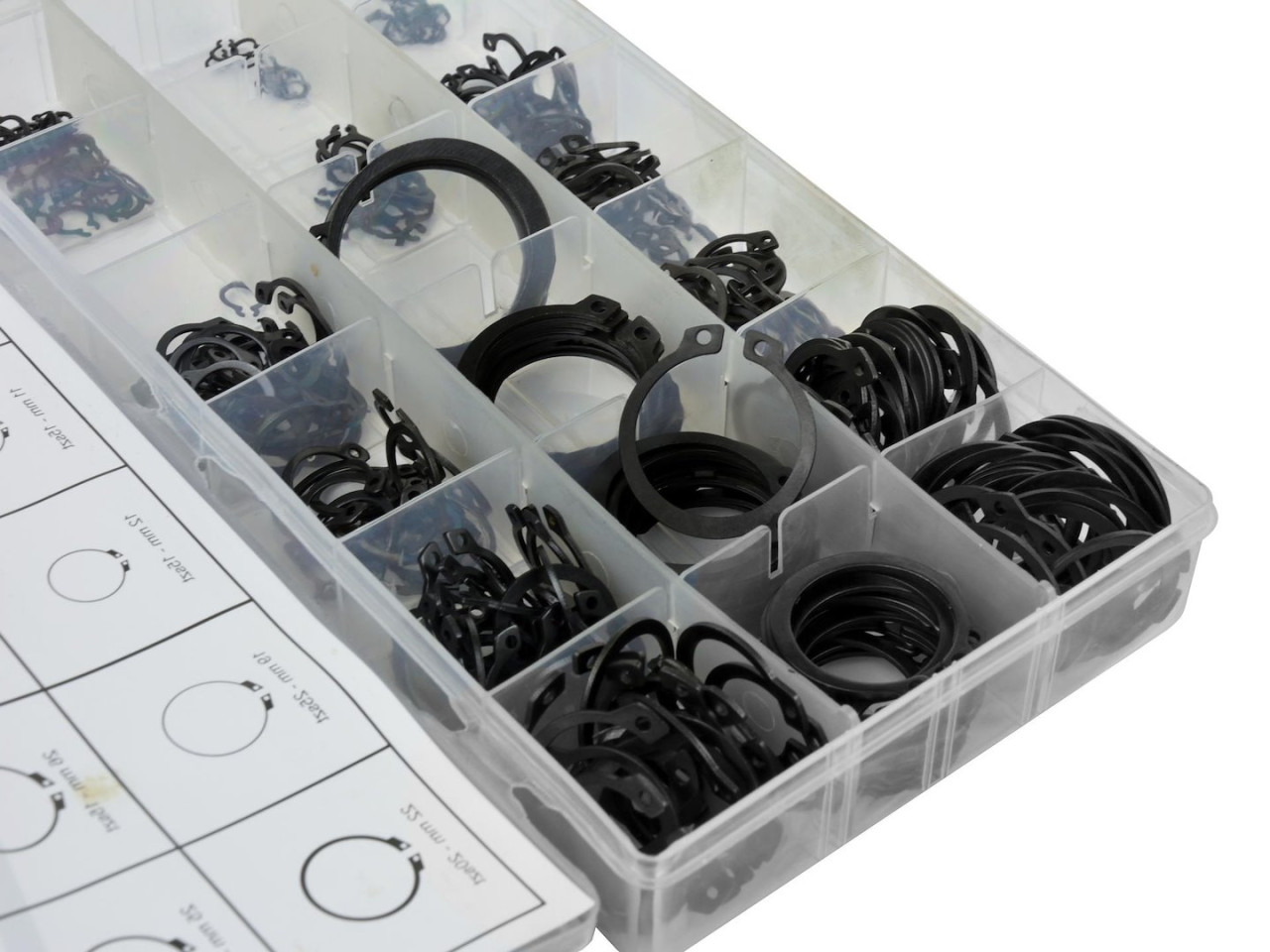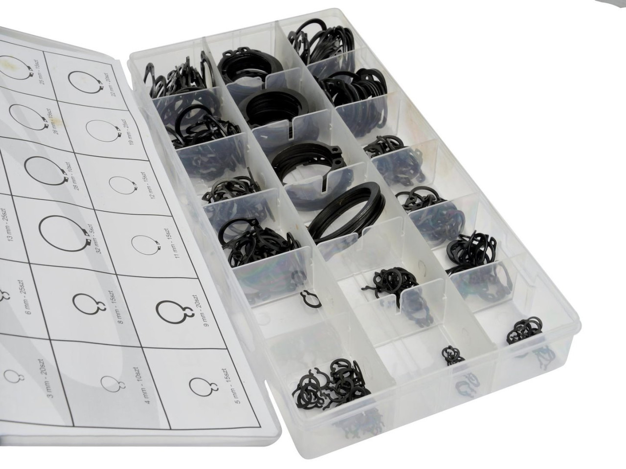 Set od 300 vanjskih Seeger prstenova u veličinama od 3 do 32 mm.